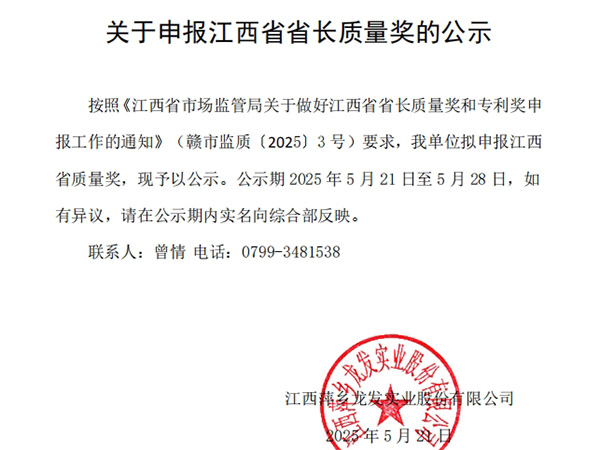 關(guān)于申報(bào)江西省省長(zhǎng)質(zhì)量獎(jiǎng)的公示2025/05/21