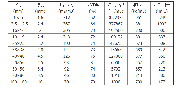 散堆填料拉西環具有優異的耐酸耐熱性能,能耐除氫氟酸以外的各種無機酸、有機酸及有機溶劑的腐蝕,可在各種高,低場合使用,應用范圍十分廣泛。