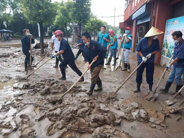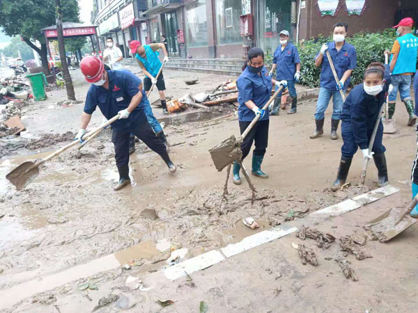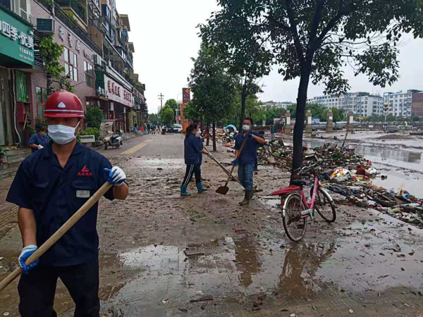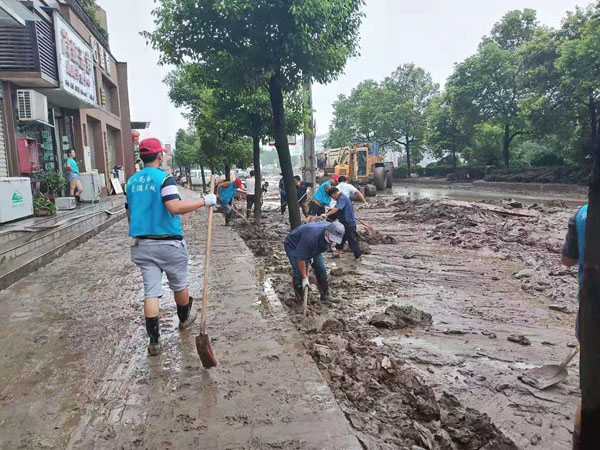 江西萍鄉(xiāng)龍發(fā)實(shí)業(yè)股份有限公司勇于擔(dān)當(dāng)社會(huì)責(zé)任,公司領(lǐng)導(dǎo)指示全力援助湘東災(zāi)后重建工作。龍發(fā)實(shí)業(yè)黨支部精心組織了一批員工干部投入到災(zāi)后重建環(huán)境整治工作中。龍發(fā)人連日頂風(fēng)冒雨,在災(zāi)后臭氣熏天的湘東街道上對(duì)路面淤泥、路面垃圾進(jìn)行清理,并出動(dòng)鏟車、灑水車協(xié)同作業(yè),努力為重建美好家園貢獻(xiàn)龍發(fā)人的一份力量。